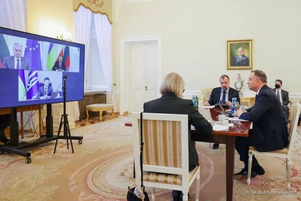 The leaders of these three countries expressed their support and solidarity in the face of the border crisis „managed by Minsk” on the Lithuanian-Belarusian and Polish-Belarusian borders. They expressed concerns about „further weakening of the security and stability of the region and the evolving threats, including hybrid ones, resulting from, inter alia, continued Russian aggression”.
